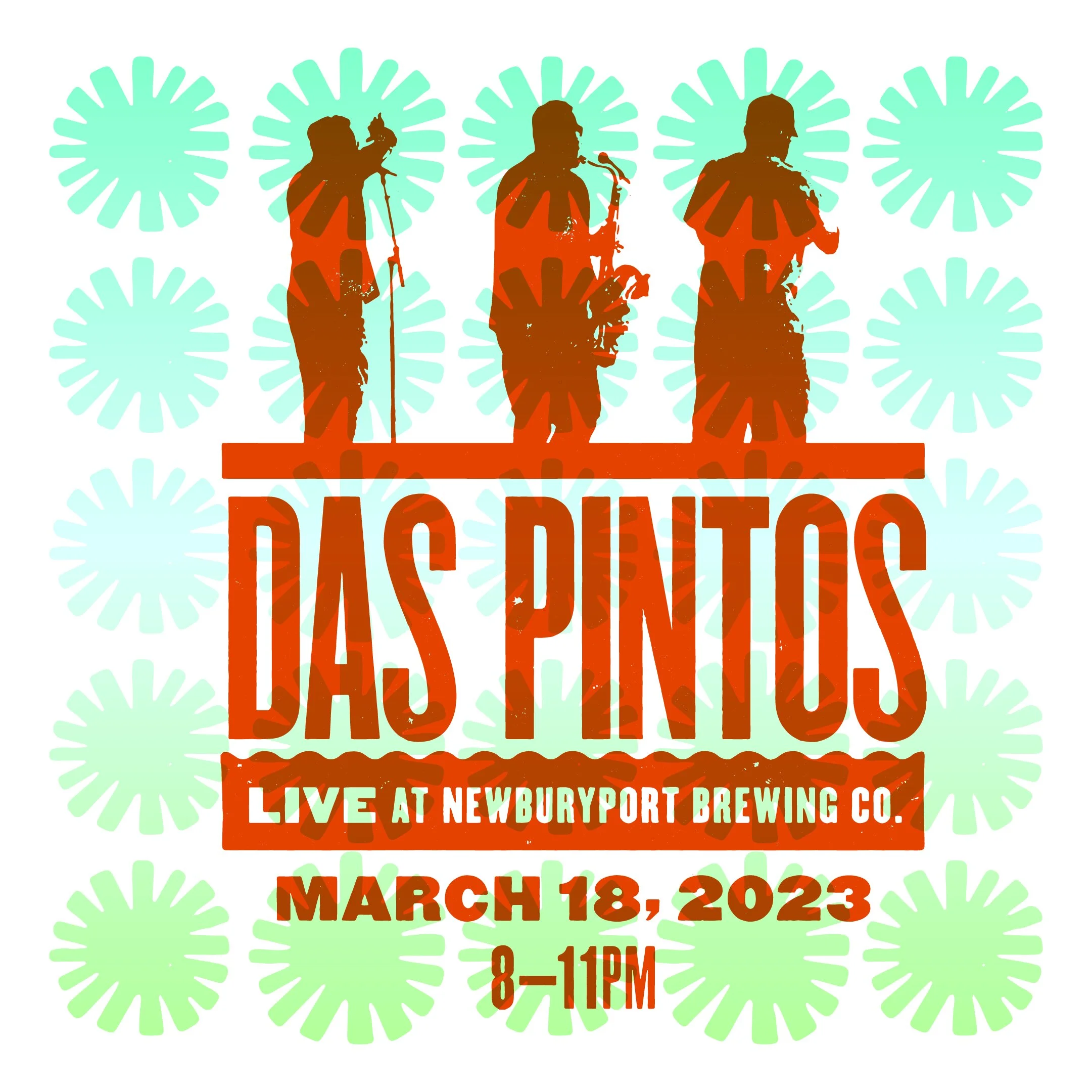 Back to All Events Das Pintos - $10 Saturday, March 18, 2023 8:00 PM 11:00 PM Newburyport Brewing Co. 4 New Pasture Road Newburyport, MA, 01950 United States (map) Google Calendar ICS The super fun 7-piece funk band - DAS PINTOS - brings the party to the brewery for a night of dancin and drinkin. Come party with the funk! Only $10 and all proceeds go to feed the needy through Our Neighbor's Table. Buy tickets | $10