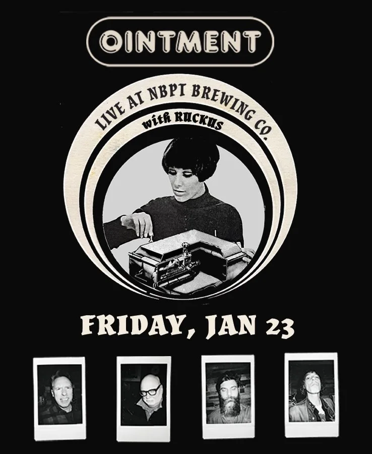 Ointment with Ruckus Friday, January 23, 2026 6:00 PM 9:00 PM Newburyport Brewing Co. 4 New Pasture Road Newburyport, MA, 01950 United States (map) Google Calendar ICS